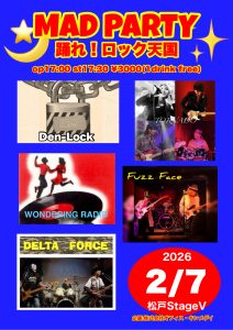 出演:TORNADO、FUZZ FACE、WONDERING RADIO、DELTA FORCE、Den-Lock